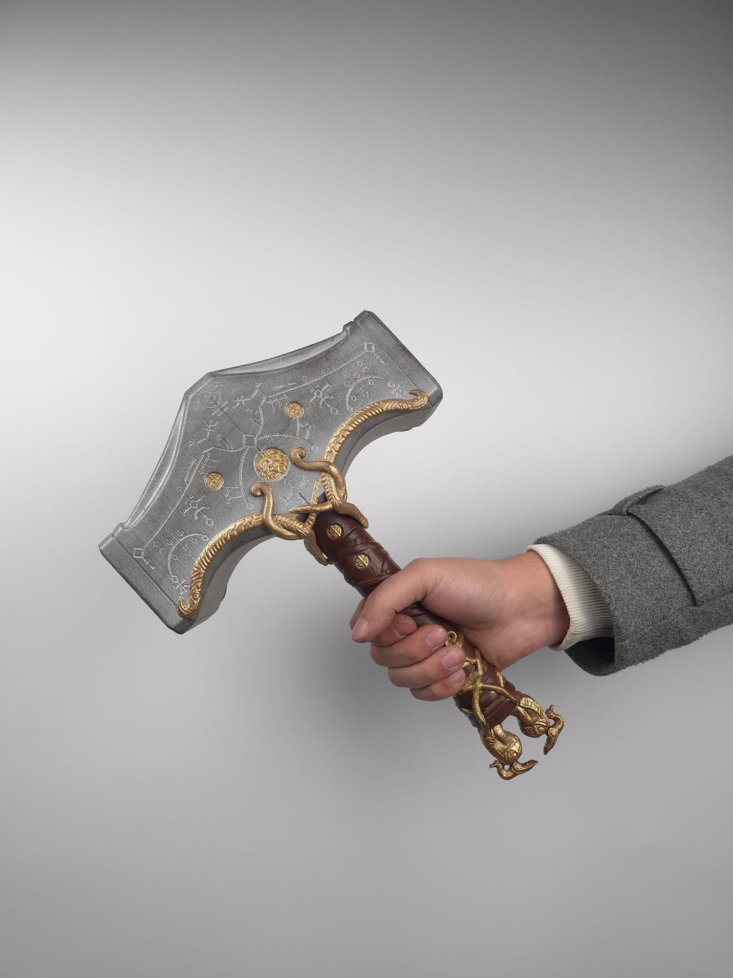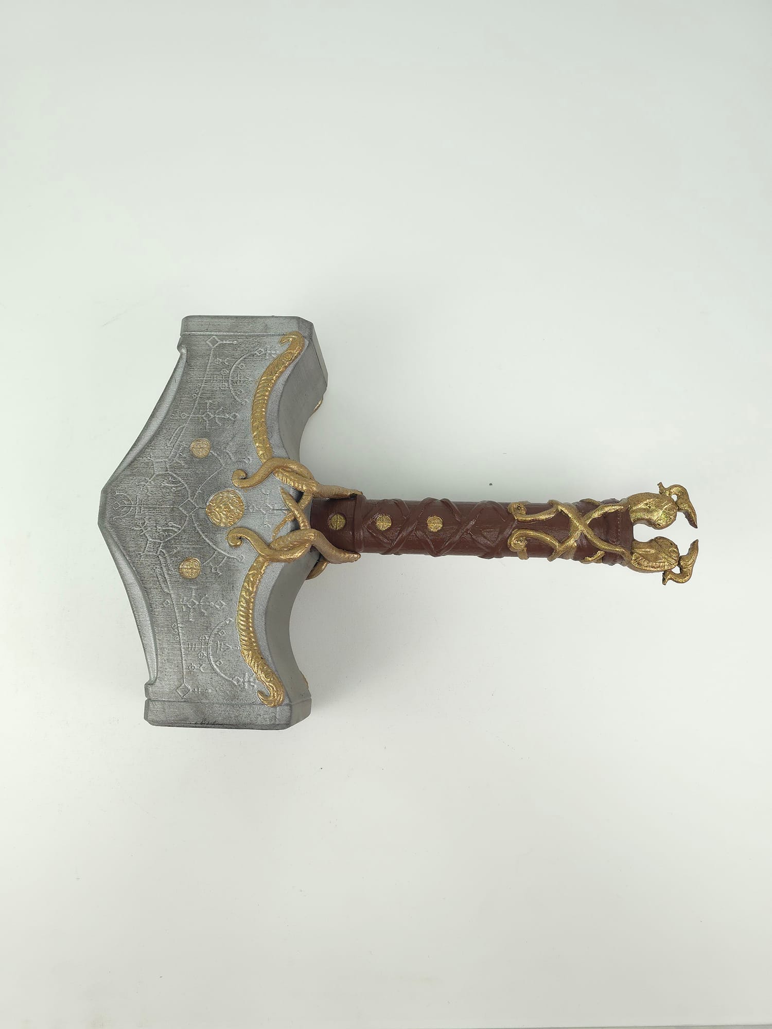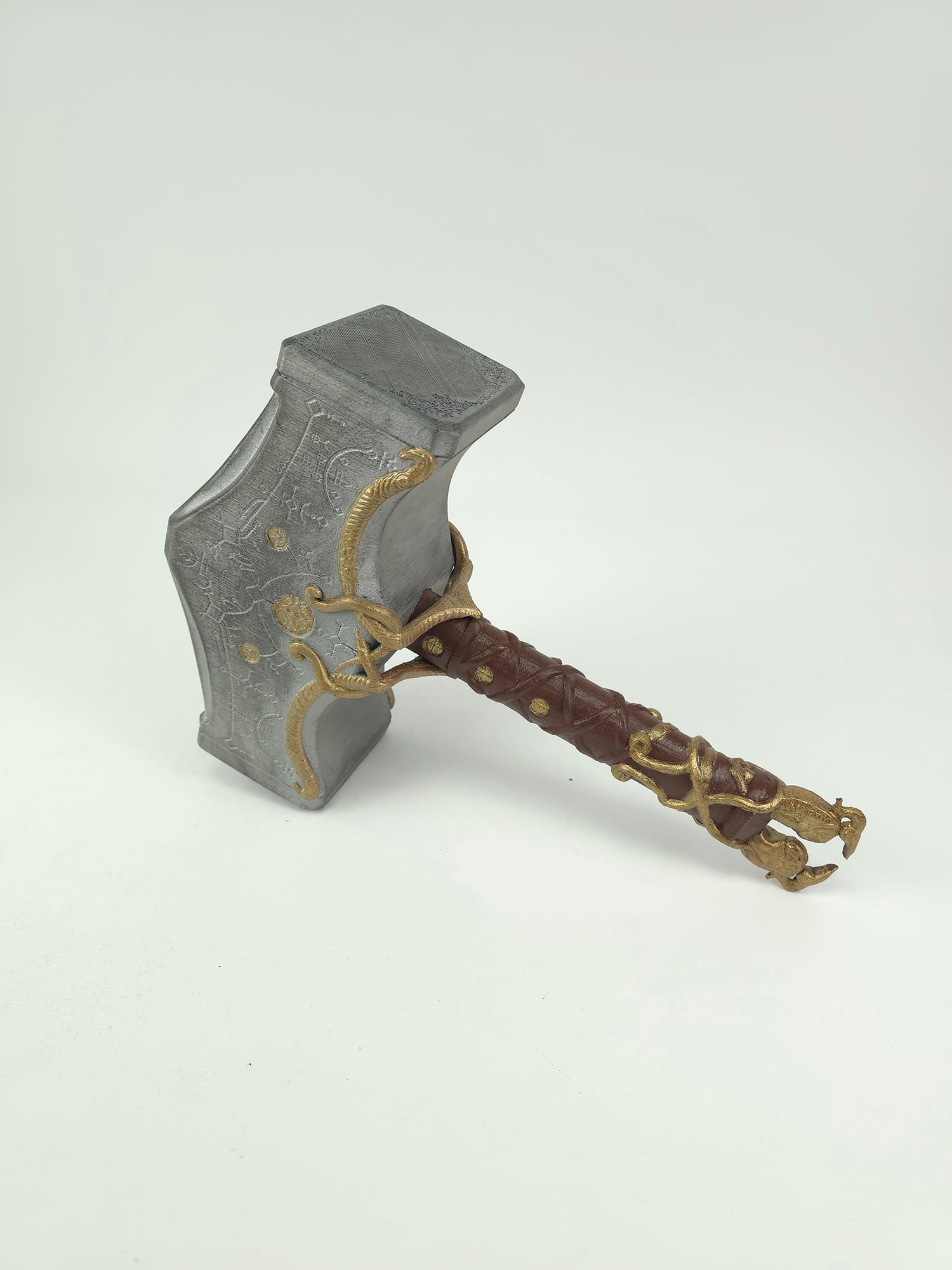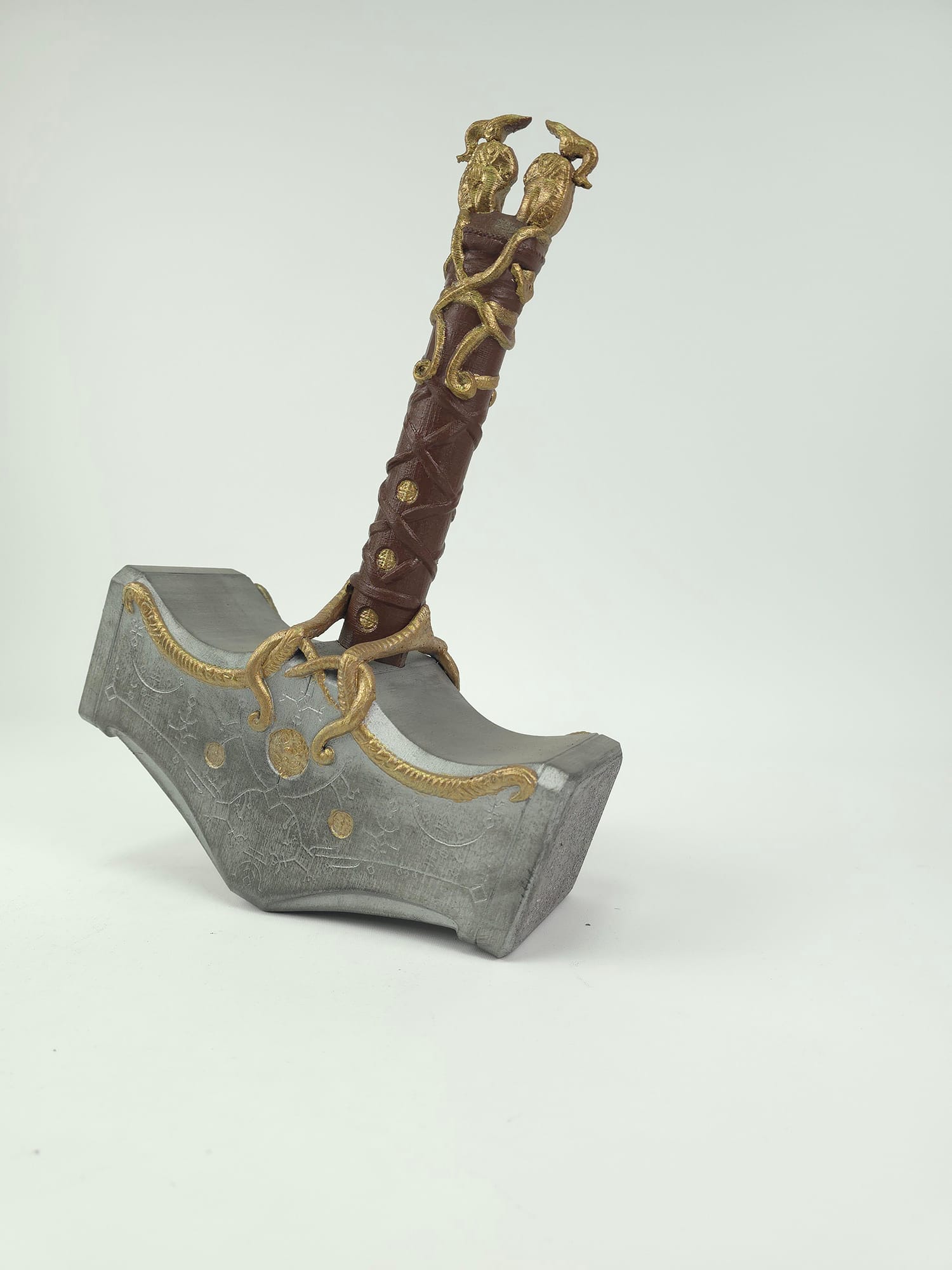 Kratos Mjolnir Çekiç, God of War serisinden esinlenerek tasarlanmış dekoratif ve cosplay amaçlı bir balta modelidir. 3D baskı teknolojisi ile üretilen bu ürün, taş dokulu gövdesi