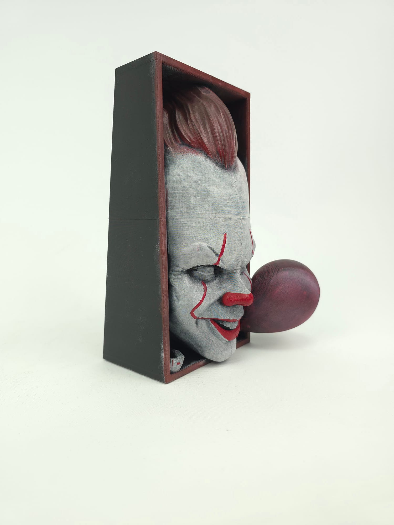 Pennywise Bookend, korku temalı dekorasyon sevenler ve koleksiyonerler için özel olarak tasarlanmış dekoratif bir kitap tutucudur. 3D baskı teknolojisiyle üretilen bu model, kitaplarınızı sabit tutarken raf ve masa düzeninize güçlü bir görsel etki katar.